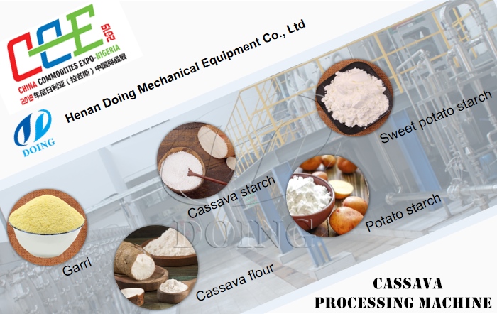 Besides, another department of Henan Doing Company will bring cassava processing technology, including garri processing technology, starch processing technology and flour processing technology to attend the China Commodities Expo-Nigeria 2019. [Learn more: cassava processing machine]